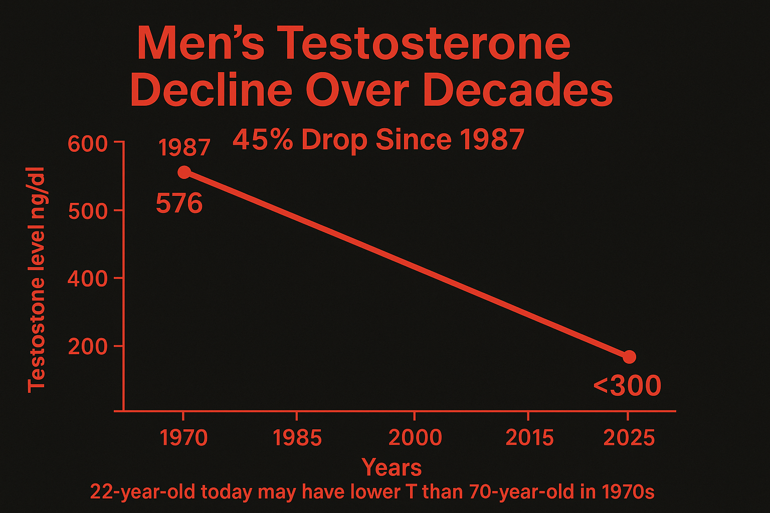 So if you're feeling tired, weak, or like something is "off"... you are not alone. Because men today have 45% less testosterone than men in 1987.